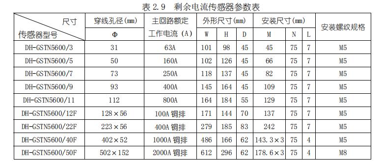 DH-GSTN5600 系列探測器型號與傳感器的參數關系表