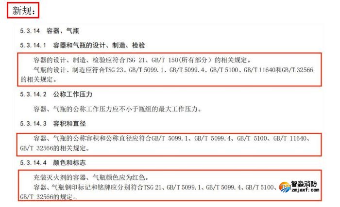 九、增加了瓶組結構要求、外貯壓式滅火劑瓶組的瓶組特性及其試驗方法、瓶組充裝密度和充裝壓力試驗方法、誤噴放防護裝置抗沖擊試驗方法